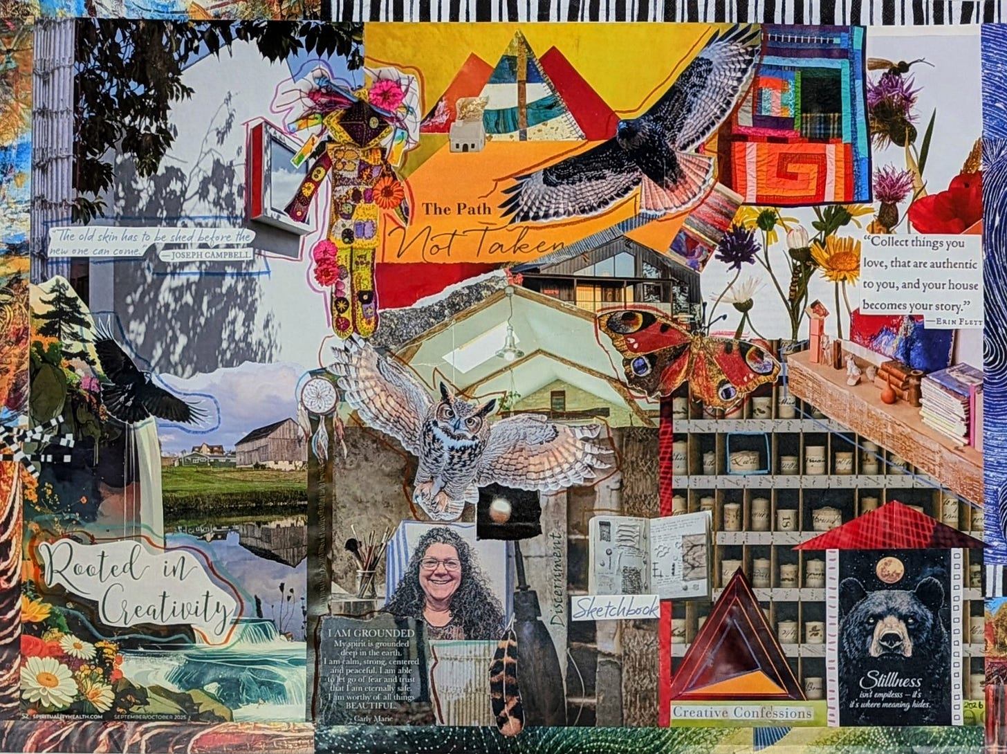 After I created my vision board for this year, I noticed the birds all the birds I glued down had their wings wide open. As I quickly made this awareness it was the first messaged I received for the year. Stay Open, not matter what, day and night, even during my shadow side moments.
